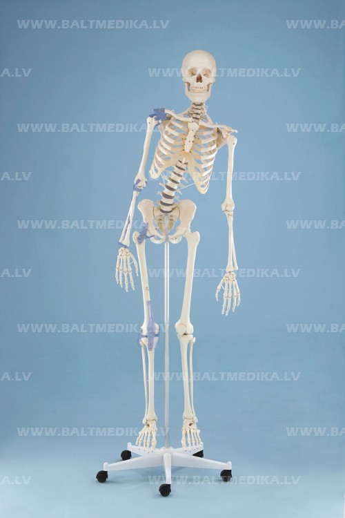 Anatomisks skelets ar locītavu saitēm un kustīgu mugurkaulu.