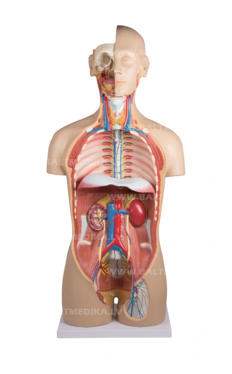 Pieauguša cilvēka, dabīga izmēra torss ar atvērtu muguru. Sastāv no 27 daļām, kas nodrošina cilvēka ķermeņa svarīgākos orgānus un anatomiskās struktūras. Galva šķērsgriezumā ir sadalīta, lai ir iespējams apskatīt galvaskausu, smadzenes, mutes un rīkles rajonu kā arī aci. Kakls ir sadalīts lai redzētu balseni, rīkli un vairogdziedzeri. Krūšu kurvis un vēdera dobums ir pilnībā atvērts un visi iekšējie orgāni ir izņemami tuvākai apskatei. Atsevišķas sieviešu un vīriešu uroģenitālās sistēmas. Atvērta mugura, muskuļu, mugurkaula, muguras smadzeņu un nervu apskatei. Noņemami skriemeļi.