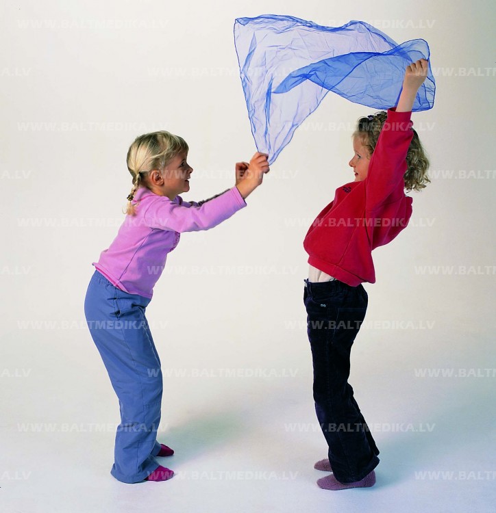 Komplektā 4 gaisīgi neilona lakatiņi jautrās krāsās (dzeltens, sarkans, zils un zaļš).
