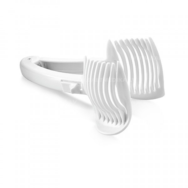 Atvieglos apaļu un ovālu produktu sagriešanu (tomāti, kivi, olas utml.), kā arī pasargās no savainošanās. Satveriet produktu starp knaiblēm un ar nazi starp spraugām to sagrieziet. Iegūstiet vienādi sagrieztas šķēlītes.