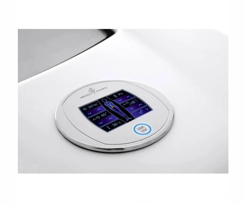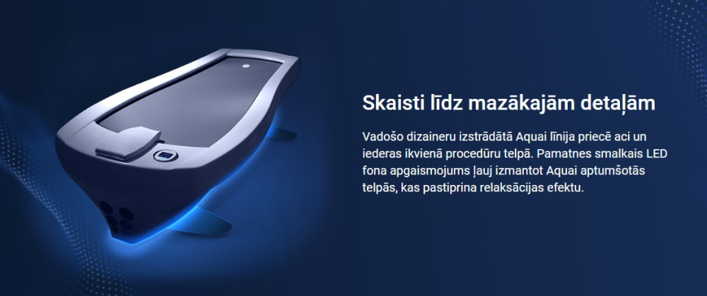 | Aquai ierīci izmanto, lai veiktu membrānas masāžas procedūras. Aquai ir plašs pielietojumu klāsts, tostarp ārstniecības un relaksācijas nolūkos. Tas ir ideāli piemērots rehabilitācijas centriem. Ārstēšanas laikā ūdens strūklas, cirkulējot slēgtā kontūrā, ietriecas necaurlaidīgā membrānā, ļaujot pacientam izjust hidromasāžas priekšrocības bez tiešas saskares ar ūdeni. Membrānas masāžas iekārta Aquai ir aprīkota ar funkcijām procedūras ilguma regulēšanai, viena secības posma ilguma regulēšanai un masāžas zonu izvēlei, kas darbojas noteiktā secības posmā. Aquai ierīce ir sadalīta sešās masāžas zonās. Ir arī regulējama ūdens temperatūra. Lai nodrošinātu komfortu procedūras laikā, ūdens temperatūra tiek uzturēta visas procedūras laikā. | ![]() |