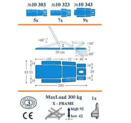7. 7. Augstuma regulēšana ar elektromotoru: 42 – 92 cm (+/- 5%)