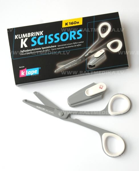Īpašas K-Taping šķēres ar teflona pārklātu asmeni. Ar mini clipu.