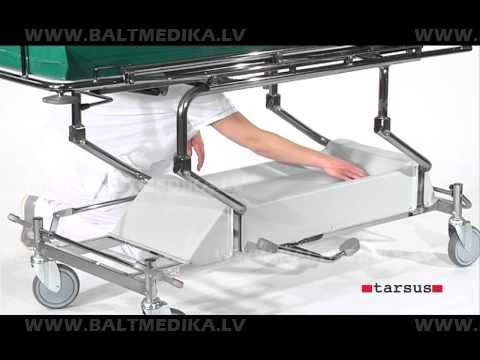 Hidrauliski (ar pedāli) regulējams augstums, divdaļīgs hromēts rāmis, muguras atbalsts un Trendelenburga pozīcija uzstādāma (regulējas) ar gāzes amortizatora palīdzību, četri 150 mm ar centrālo bremzēšanas sistēmu aprīkoti riteņi. Matracis 50 mm vai 100 mm. Matrača plastikas pārklājs / mantu glabāšanas kaste iekļauti cenā.