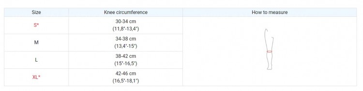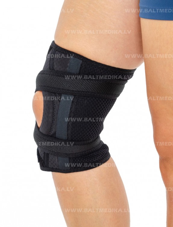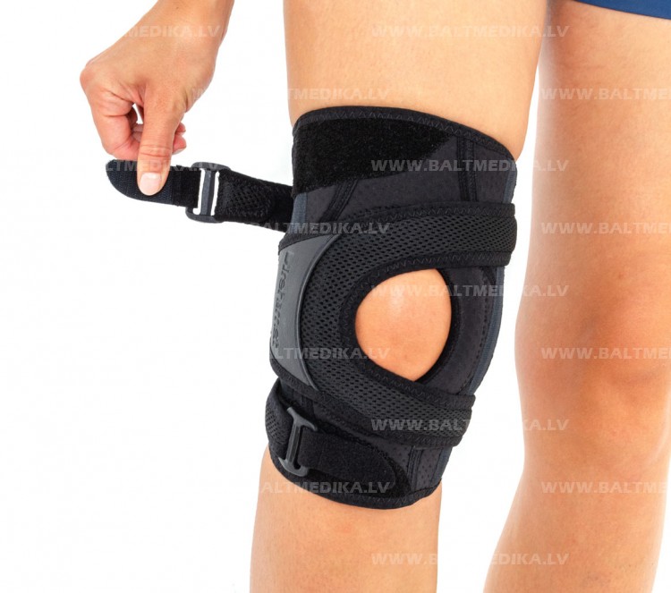Ceļa atbalstu nodrošina mīksta sānu pelote, kas aprīkota ar divām neatkarīgām riņķveida siksnām, kas stiprinās virs un zem ceļgala. Turklāt regulējamā silikona pelote pareizi nostiprina ceļa skriemeli.