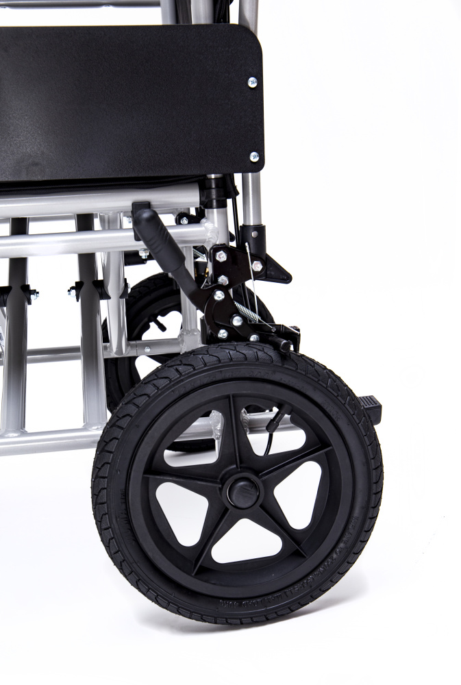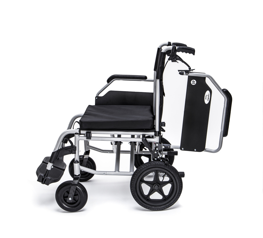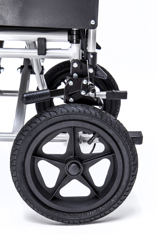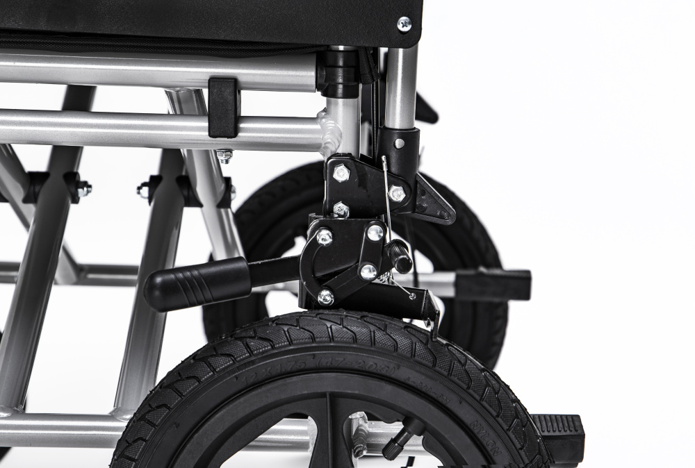 Šī pārvietošanās līdzekļa konstrukcija veidota no alumīnija, tā ir krāsota, ar krustenisku stiprinājumu, tādēļ riteņkrēsls ir viegli salokāms un ērti pārvietojams. Riteņkrēsla platums salocītā veidā – tikai 32 cm. Ja vēlaties izplest riteņkrēslu, spiediet sēdekļa šķērsstieņus lejup, kamēr sēdeklis pilnībā iztaisnojas. Ja vēlaties sakļaut riteņkrēslu, vispirms noņemiet vai paceliet kāpšļus. Paņemot sēdekli aiz malām, celiet to augšup, kamēr riteņkrēsls pilnībā sakļausies. Ja vēlaties iekāpt riteņkrēslā vai izkāpt no tā, vienmēr pagrieziet kāpšļus uz sāniem vai paceliet tos augšup.