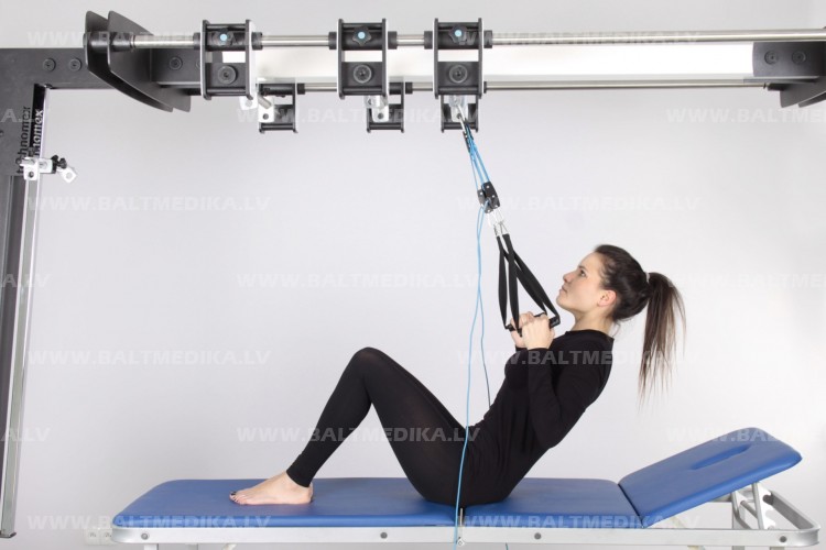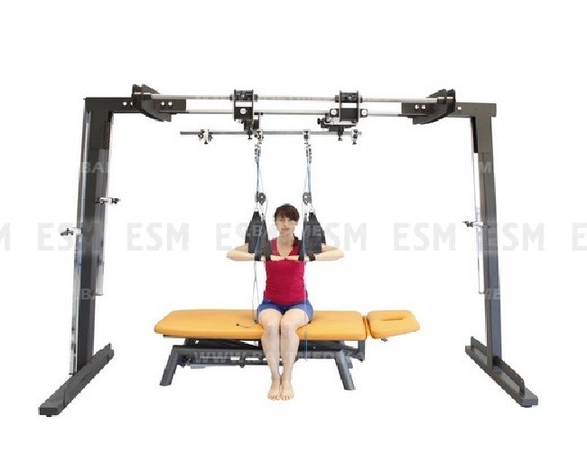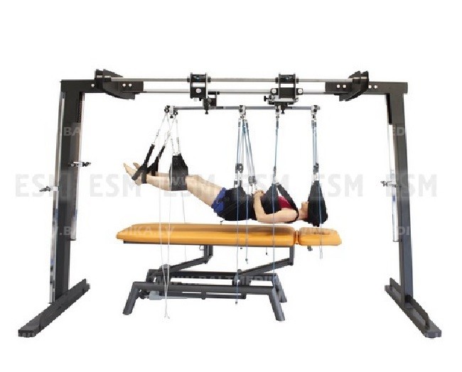 Funkcionālo treniņu un iekares (slinga) terapijas brīvi stāvoša konstrukcija. Stabils brīvstāvoš rāmis, kas sastāv no divām konstrukcijas atbalsta kājām un diviem paralēliem, horizontāli novietotiem, tērauda stieņiem pa kuriem pārvietojas 2 garenvirziena / šķērsvirziena iekares atbalsta ratiņu sistēmas. Viena no iekares atbalsta sistēmām ir aprīkota ar pagriežamu (rotējošu) sviru. Iekares atbalsta sistēmas iekārtas augšpusē ir aprīkotas ar 12 pārvietojamiem iekares punktiem un 6 (ar mainīgu augstumu) iekares punkti atrodas uz konstrukcijas atbasta kājām esošajām ‘sliedēm’. Uz konstrukcijas atbalsta kāju apakšējās horizontālās daļas ir pieejami papildus stiprinājumu caurumi kabeļu un karabīņu piestiprināšanai abās pamatnes pusēs. Iekares atbalsta ratiņi ir aprīkoti ar augstas kvalitātes gultņiem, kas nodrošina īpaši vienmērīgu kustību un ļauj veikt vingrinājumus, izmantojot visu sliežu garumu kā garenvirzienā, tā arī šķērsvirzienā. Vienā galā atbrīvojot kvadrātveida stieni, kas savieno iekares atbalsta ratiņu sistēmas ir iespējams iegūt rotējošo atbalsta sviru, līdz ar ko iegūstot daudz plašāku iespējamo vingrinājumu klāstu nekā citām līdzīgām ierīcēm, kas pieejamas tirgū.